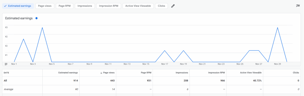 今月はGoogle AdSenseのアクセス数も報告できるので載せておきます。