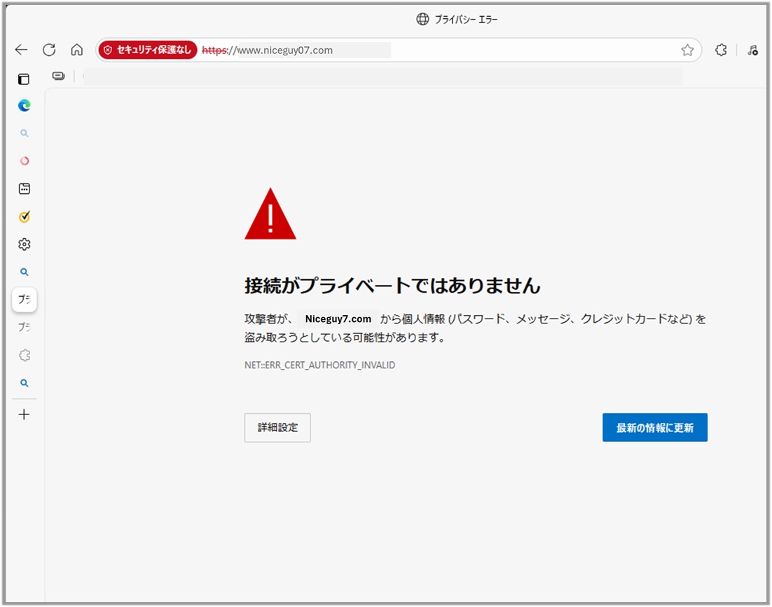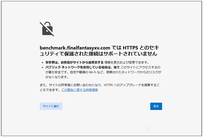 セキュアでないサイトへのアクセス