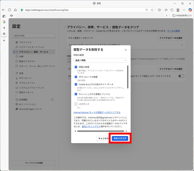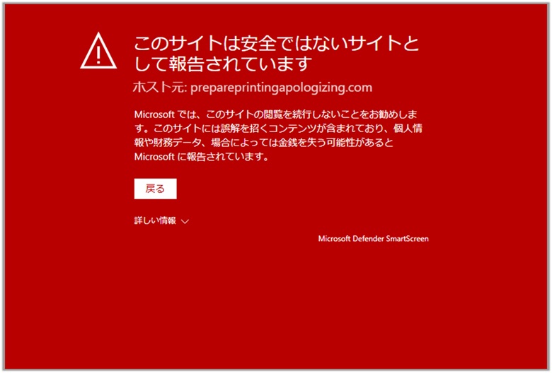 ついでにMacAfeeから警告ダイアログが鳴り響きだし、驚いた私はあわててサイトを閉じてEdgeの閲覧データをすべてクリアしてしまいました。それでまた平穏が戻ってきました。この間、SmartScreenのようなものが出てくることはありませんでした。