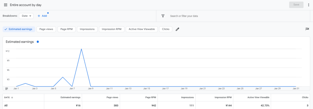 ついでにGoogle AdSenseのアクセス数もみてみます。