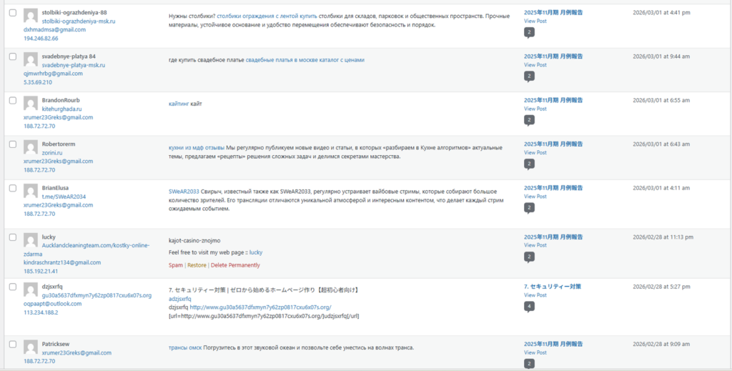 一日で40コメント以上(!)。だいたい10分前後で同じサイトから送られてきます。私は医療福祉の従事者なので、ナイチンゲール精神ですべての人に分け隔てなくコメントを返そうと誓っていたのですが、心が折れてしまいました。。。