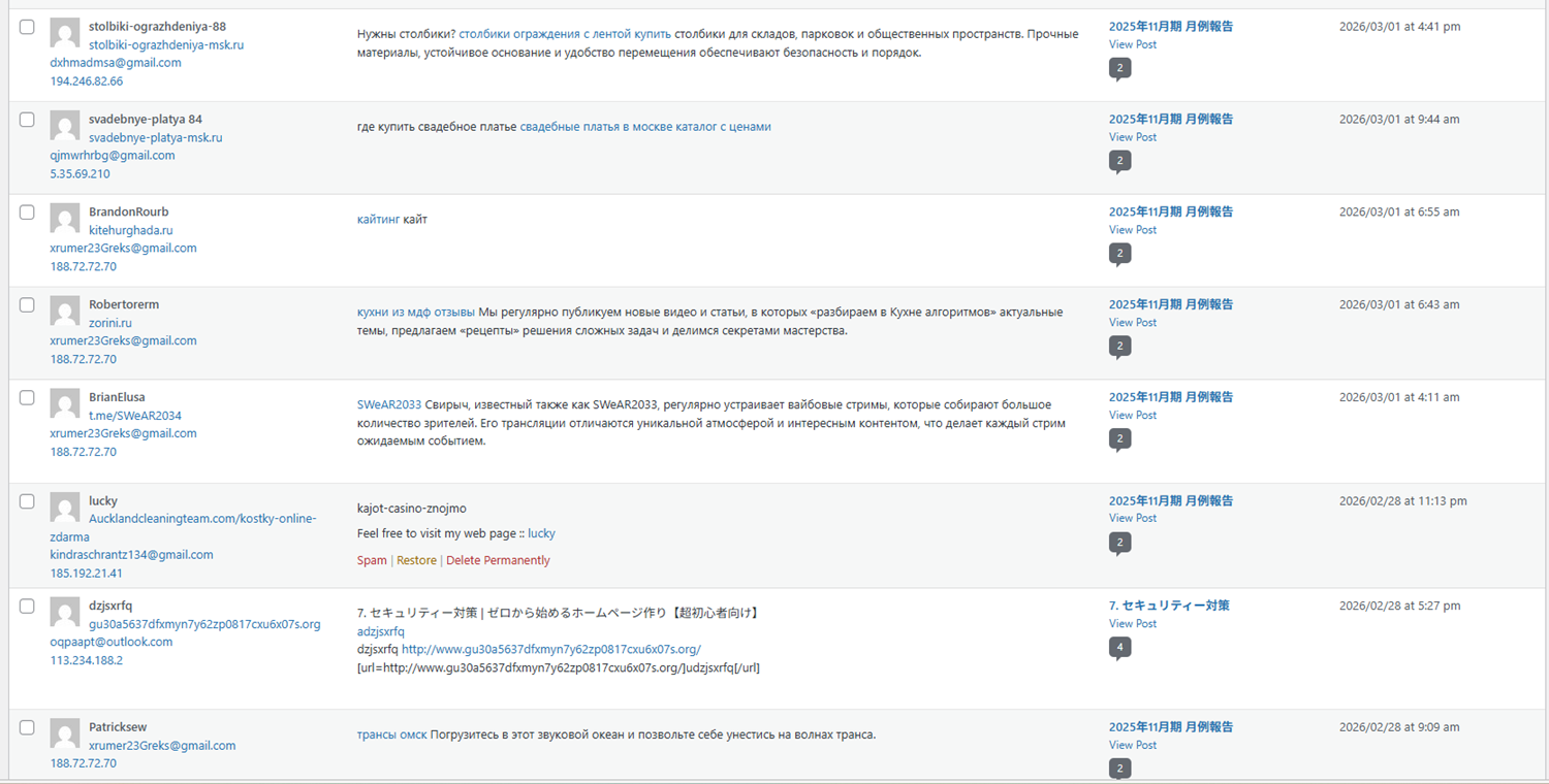 AdSenseの広告が復活するなり、コメントスパムを受けるようになりました。
