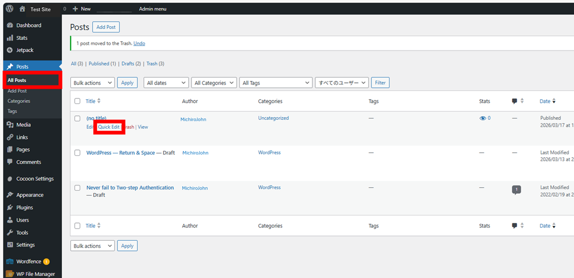 WordPress — Quick Edit