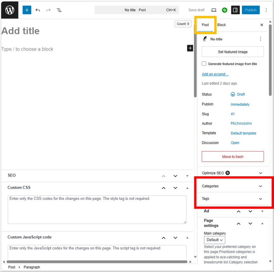 Categories and tags are related to the search hit rate, and if you want to get the top of the search list, you should set them firmly. This is called SEO (Search Engine Optimization). It may look difficult for beginners, but it’s not so difficult actually.