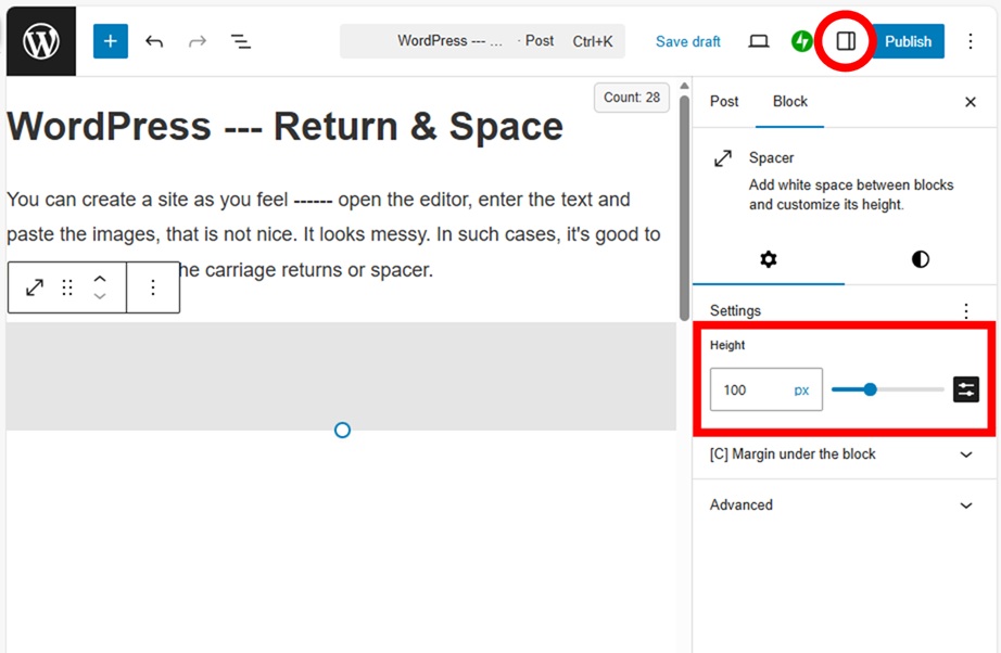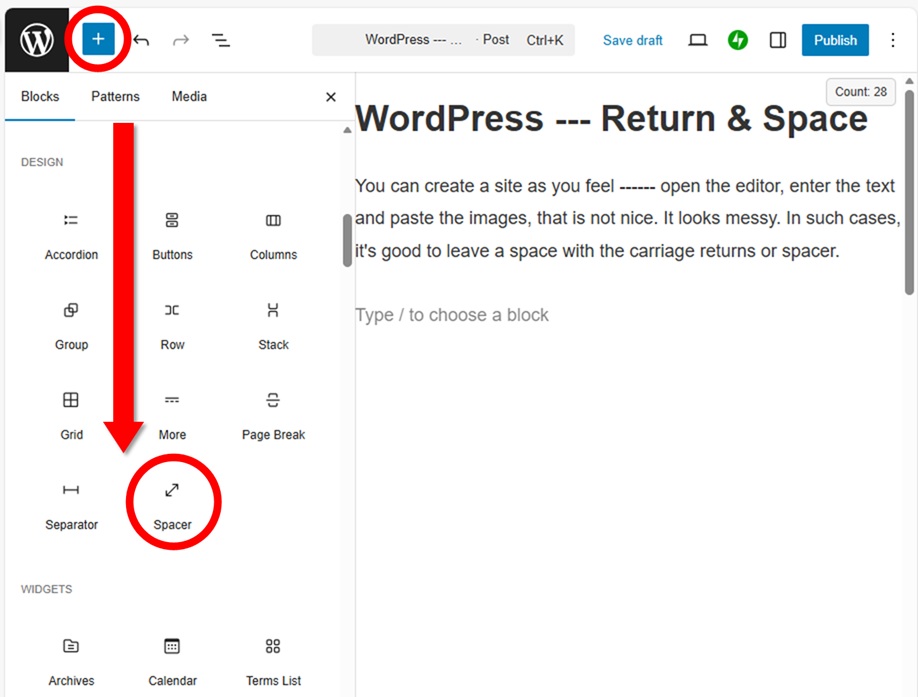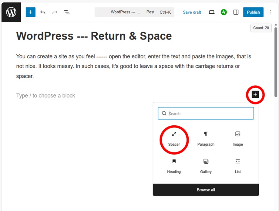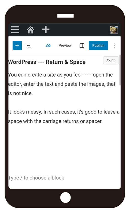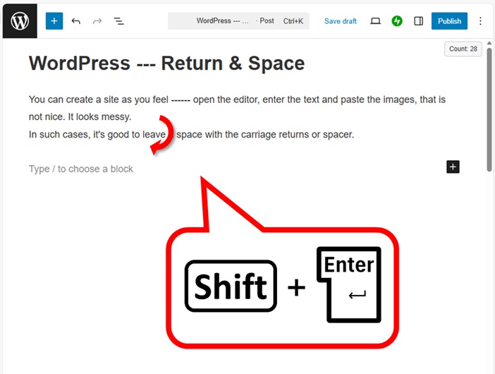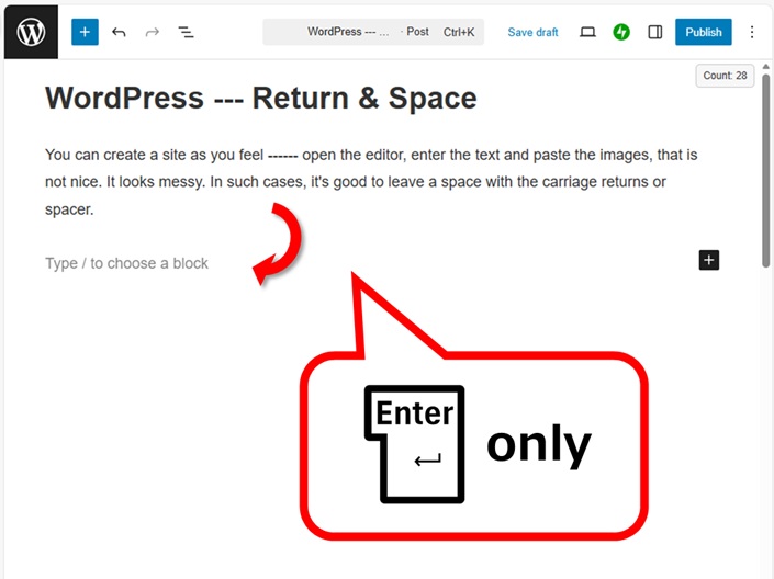You can create a site as you feel —— open the editor, enter the text and paste the images, that is not beautiful as it is. It looks messy. In such cases, it’s good to leave a space with the carriage returns or spacer.