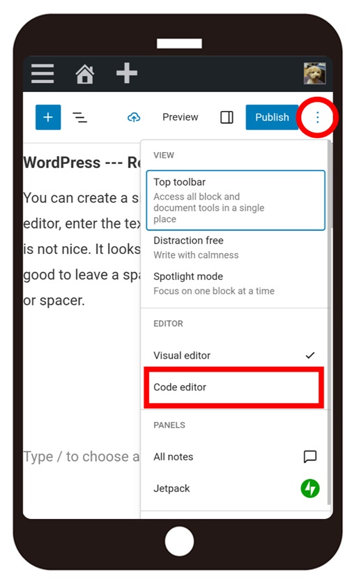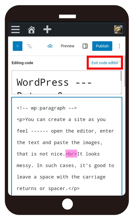 As smartphone doesn’t have Shift button, so you need to open the code editor.