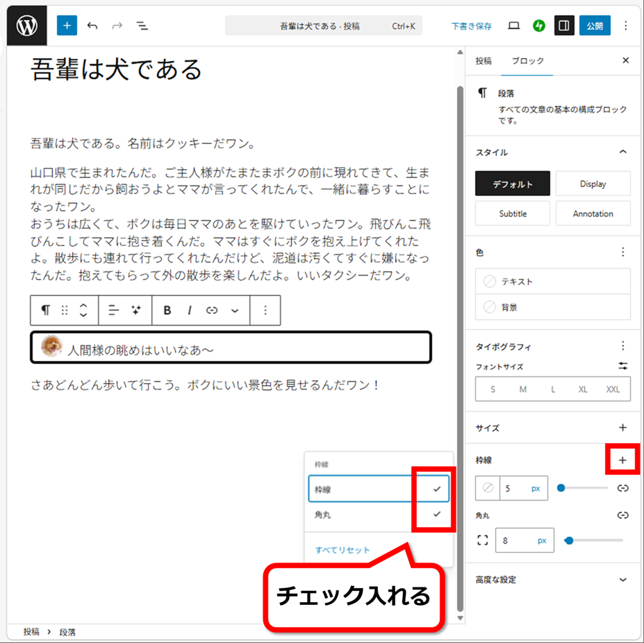 文字枠はじつはWordPressのほうが優秀だったりします。ただしWordPressはテーマによって優劣があります。