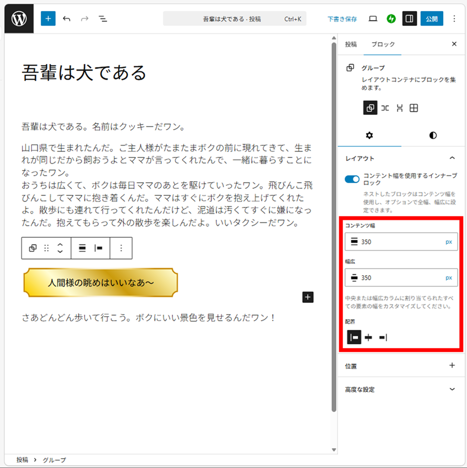 純正ワードプレスの文字枠はちょっとイマイチです。