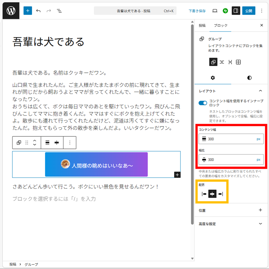 文字枠が大きすぎると思う場合は、グループ化すると良いでしょう。